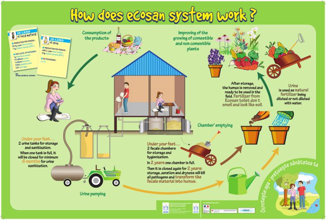 EcoSan pour Ecological Sanitation, est décrit comme une approche de l’assainissement valorisant le recyclage des déchets humains. L’objectif est de créer une boucle saine entre les domaines de l’assainissement et de l’agriculture, tout en réduisant les risques sanitaires et environnementaux.