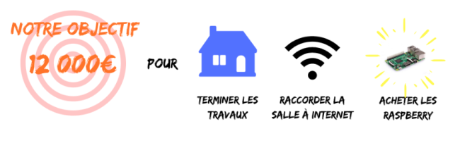 Malgré tout il nous manque maintenant 12 000€ pour financer la fin des travaux, le raccordement à internet et les raspberrys (les puces qui vont nous aider à construire les ordinateurs pour la salle informatique).
